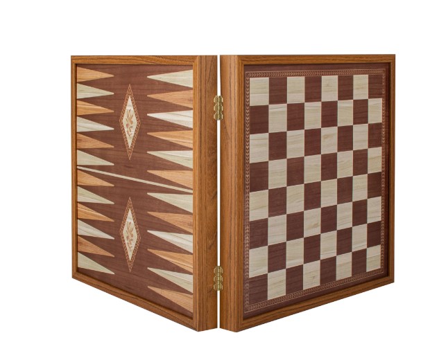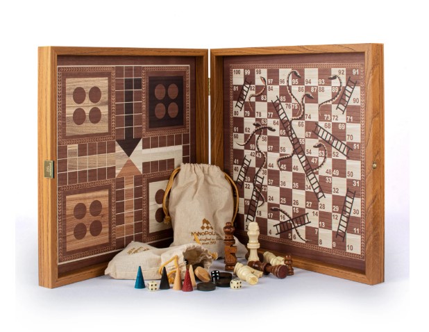 4 σε 1 σύνθετο παιχνίδι σε ξύλινη θήκη καρυδιάς - Σκάκι/Τάβλι/Λούντο/Φίδάκι
