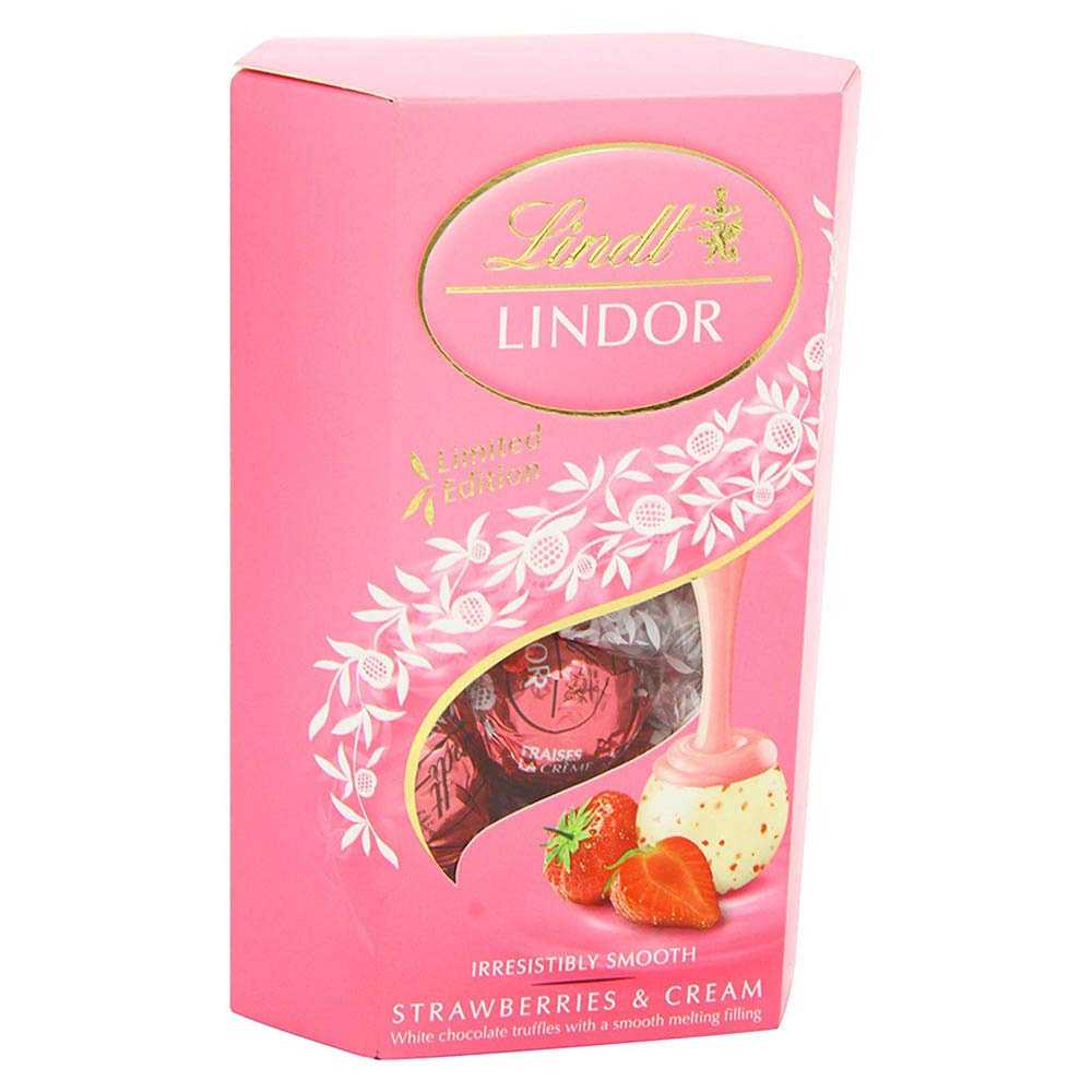 Οι Lindt Master Chocolatiers έχουν συνδυάσει την τεχνογνωσία και τα καλύτερα συστατικά για να παράγουν το τέλεια στρογγυλό σοκολατάκι λευκής σοκολάτας και φράουλας με μια ακαταμάχητα απαλή γέμιση κρέμας που λιώνει. Ιδανικό για να μοιραστείτε ή να αφεθείτε σε μια ευτυχισμένη στιγμή αποκλειστικά για τον εαυτό σας.