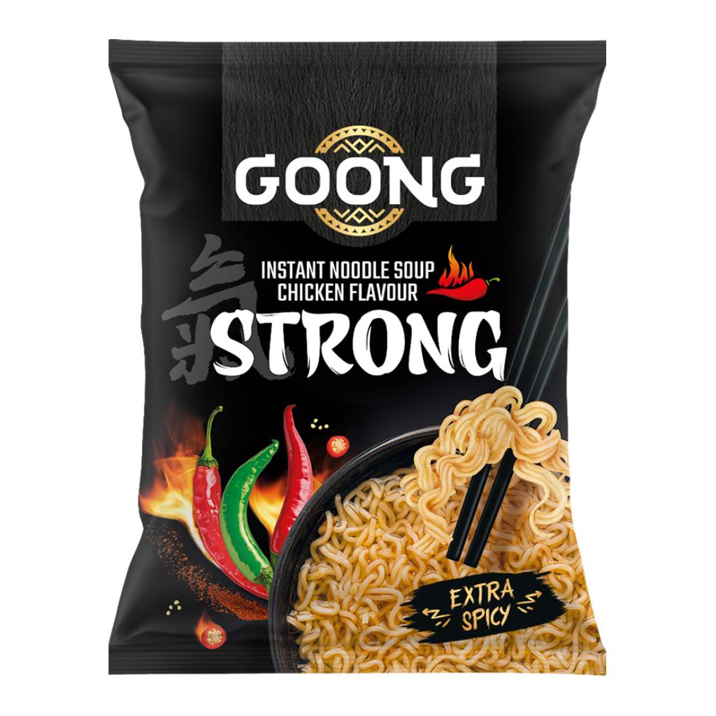 Ισχυρή καυτή στιγμιαία σούπα νουντλς κοτόπουλου Η χαρακτηριστική, καυτή γεύση της Goong Strong Hot Chicken Instant Noodle Soup είναι ένα δελεαστικό pick-me-up για τους λάτρεις της ανατολίτικης κουζίνας. Αν ψάχνετε για ένα έτοιμο γεύμα για να απολαύσετε, αυτή η σούπα είναι μια εξαιρετική επιλογή. Απλά προσθέστε ζεστό νερό στα noodles, προσθέστε τα δύο φακελάκια, περιμένετε λίγα λεπτά και είναι έτοιμο! Αυτό το χορταστικό γεύμα είναι ιδανικό για φαγητό στο σπίτι, στη δουλειά ή σε ένα ταξίδι.