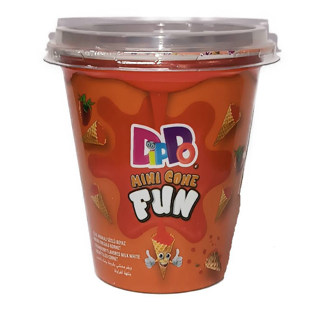 Γευτείτε την απόλυτη φρουτώδη απόλαυση με τα Dippo Mini Wafer Cones! Τραγανά χωνάκια γεμιστά με κρεμώδη strawberry crème, σε συσκευασία 100g. Ένας απολαυστικός συνδυασμός που θα σας ξετρελάνει με τη φρεσκάδα και τη γλυκύτητά του.