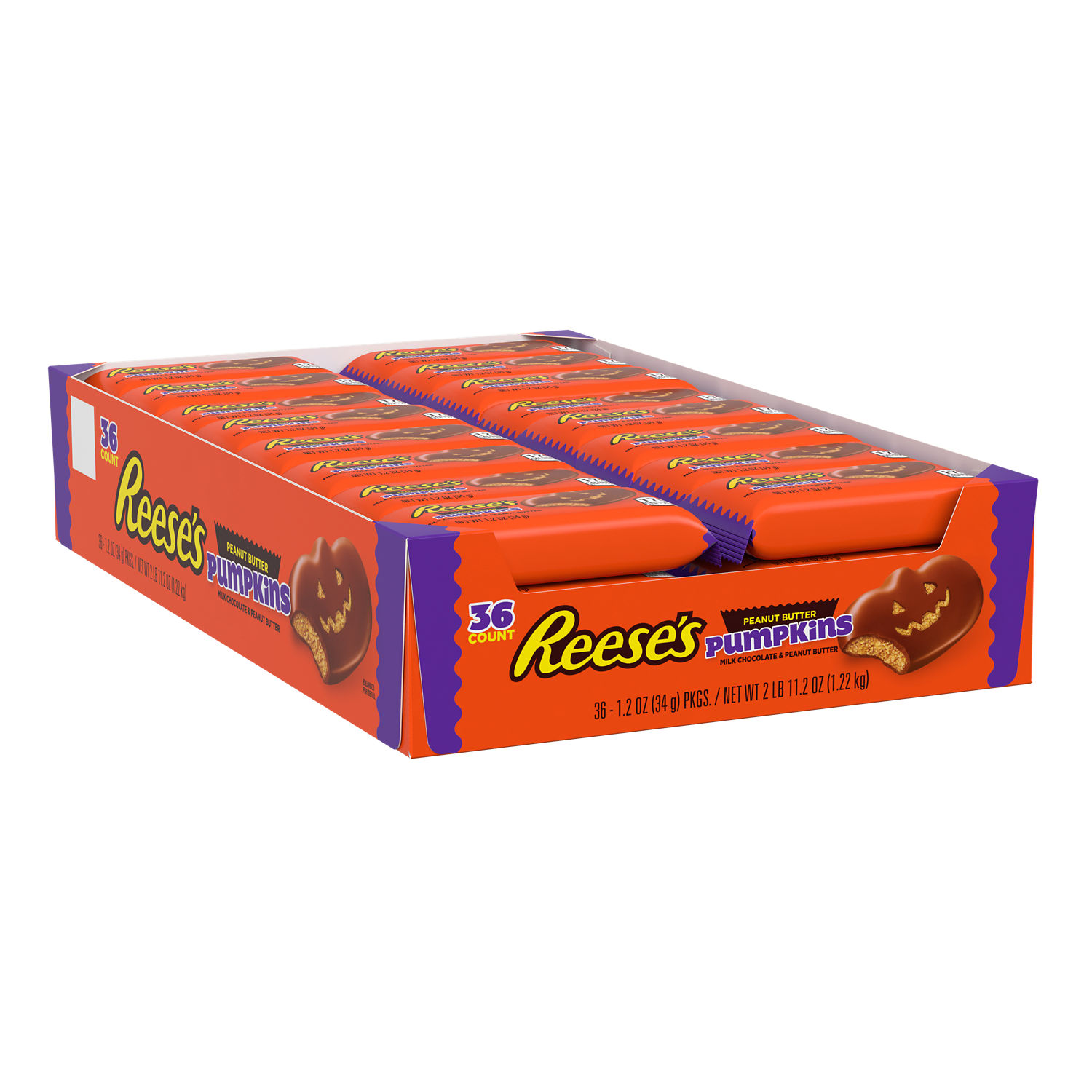 Ετοιμαστείτε για μια γλυκιά βραδιά Halloween με τις κολοκύθες REESE'S με σοκολάτα γάλακτος και φυστικοβούτυρο. Ναι, είναι το ίδιο φυστικοβούτυρο και σοκολάτα γάλακτος που αγαπάτε, αλλά σε διασκεδαστικά σχέδια σε σχήμα Halloween. Βάλτε συσκευασίες με καραμέλες REESE'S στο επόμενο πάρτι μεταμφιέσεων, προσθέστε τες σε δίσκους με γλυκά για μια επιπλέον πινελιά γεύσης φυστικοβούτυρου, ετοιμάστε τες για έναν μαραθώνιο ταινιών Halloween ή δώστε μερικές σε όσους αγαπούν το trick-or-treat για μια έκπληξη σε σχήμα κολοκύθας που σίγουρα θα ενθουσιάσει όλους. Με αυτό το μεγάλο κουτί με καραμέλες φυστικοβούτυρου, θα είστε έτοιμοι για όλη την εποχή.
